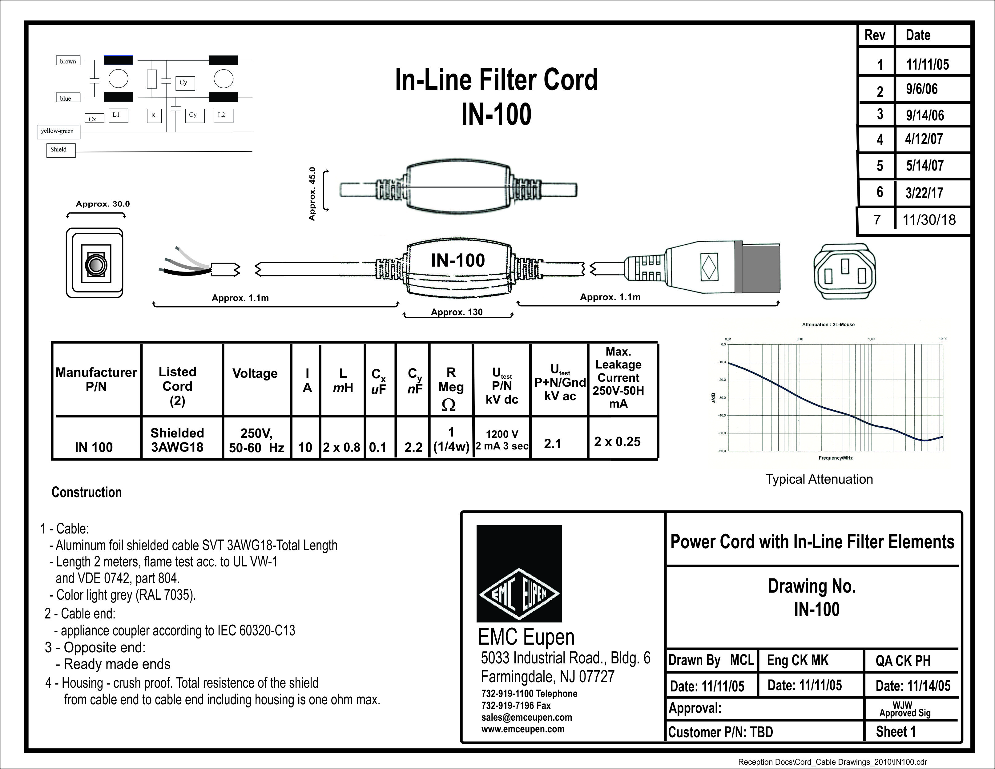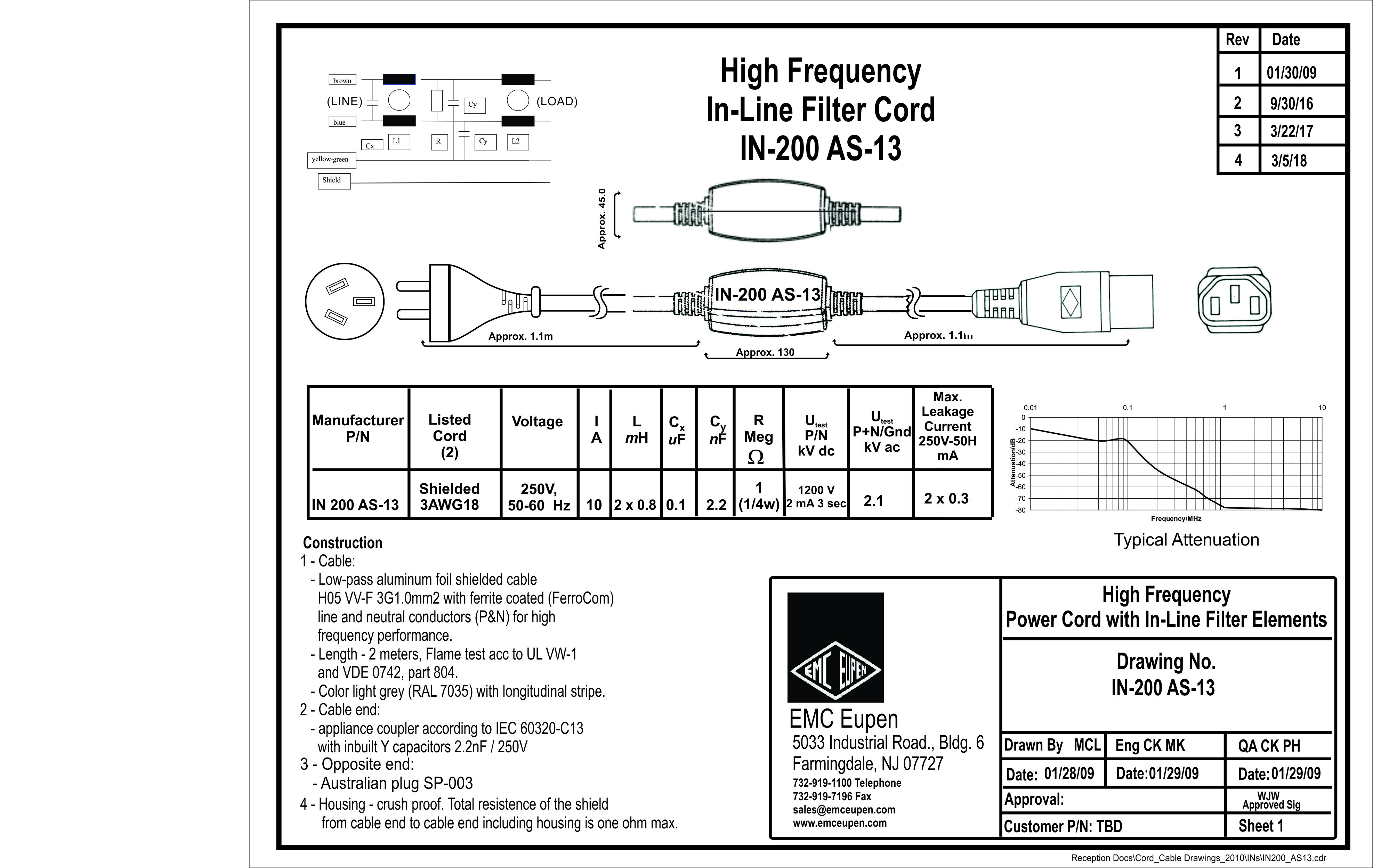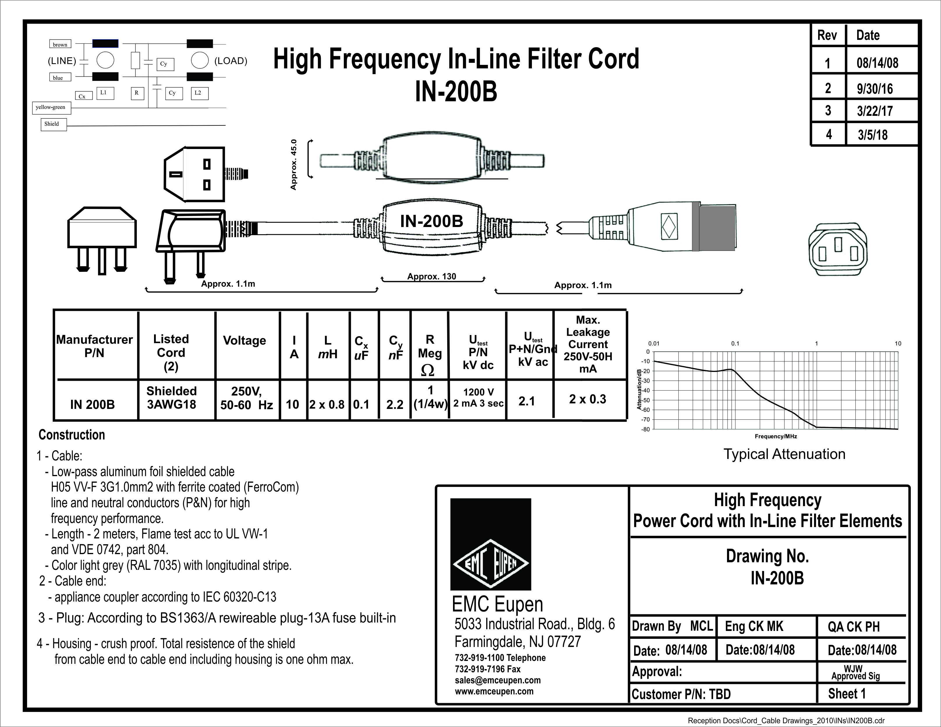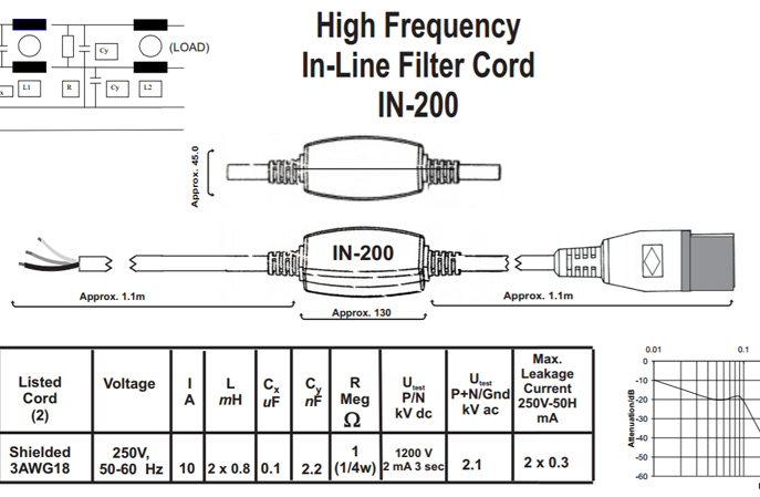 EMC Eupen has developed a Universal Filtered Power Cord for use in many countries throughout the world. This unit has even greater filtering characteristics than our standard cord set.